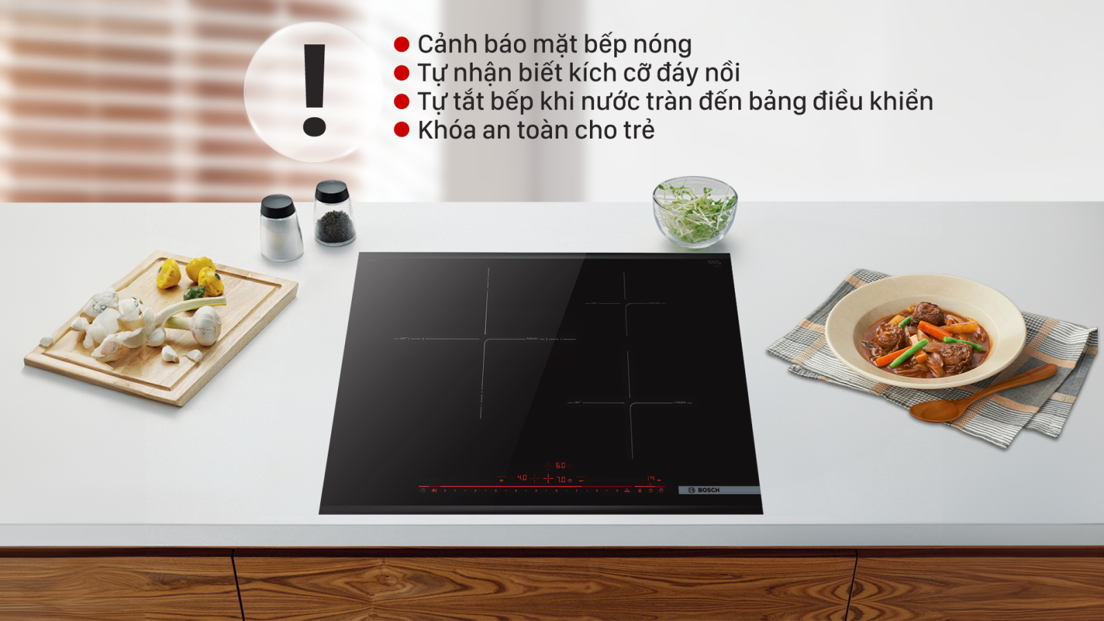 Bosch PID675DC1E không chỉ là bếp nấu nhanh, mà còn là thiết bị an toàn và tiết kiệm điện: