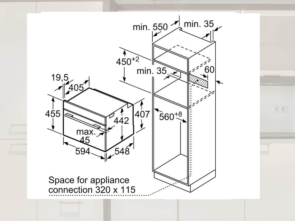 Kích thước lắp đặt (âm tủ): 450-455 x 560-568 x 550 mm