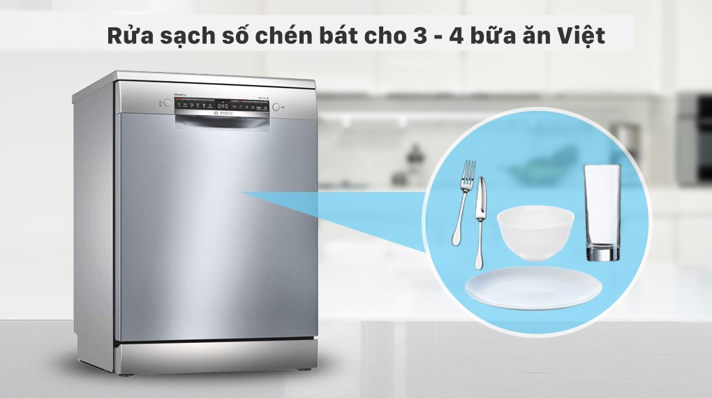 Với khoang chứa rộng kết hợp công suất mạnh mẽ chiếc máy rửa chén Bosch SMS4HCI48E này có khả năng rửa được 14 bộ đồ ăn châu Âu tương ứng khoảng 4 bữa ăn của người Việt cùng một lúc mà không cần chia làm nhiều mẻ.