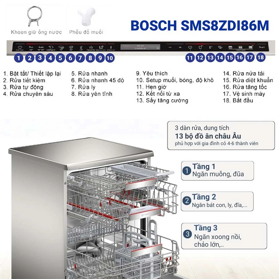 Nếu bạn đang tìm một chiếc máy rửa bát cao cấp – rửa sạch mạnh – sấy khô hoàn hảo – vận hành êm, thì Bosch SMS8ZDI86M là lựa chọn rất đáng đầu tư.