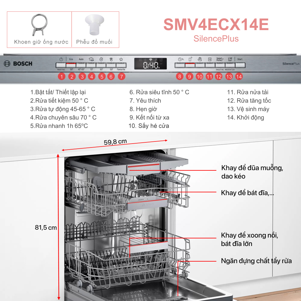 Máy Rửa Bát Âm Tủ Bosch SMV4ECX14E Series 4 Tiết Kiệm Giá Ưu Đãi