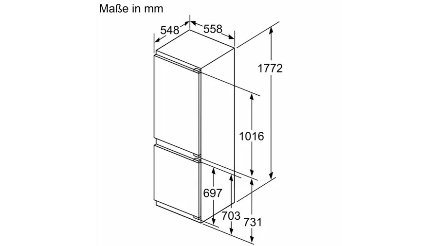 Bosch KIN86ADD0 được thiết kế dạng tủ lạnh âm tủ (Built-in) với kích thước 177.2 x 55.8 x 54.8 cm, hoàn hảo để lắp đặt gọn gàng trong hệ tủ bếp.