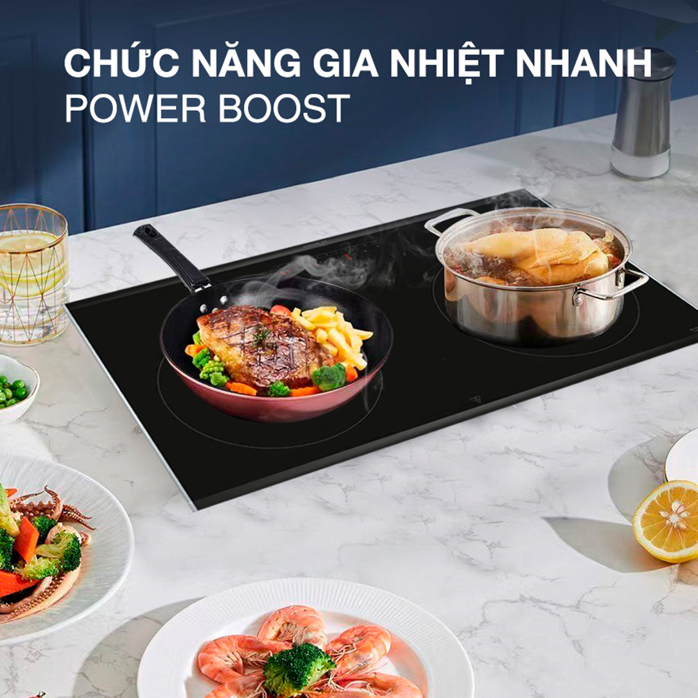 - Bosch PXE875DC1E (Serie 8, 4 vùng): Công suất 7.4 kW, tích hợp FlexZone. Dễ dùng, giá ~19.99 triệu. Boost rất hiệu quả cho đun nước và chiên xào gia đình.
