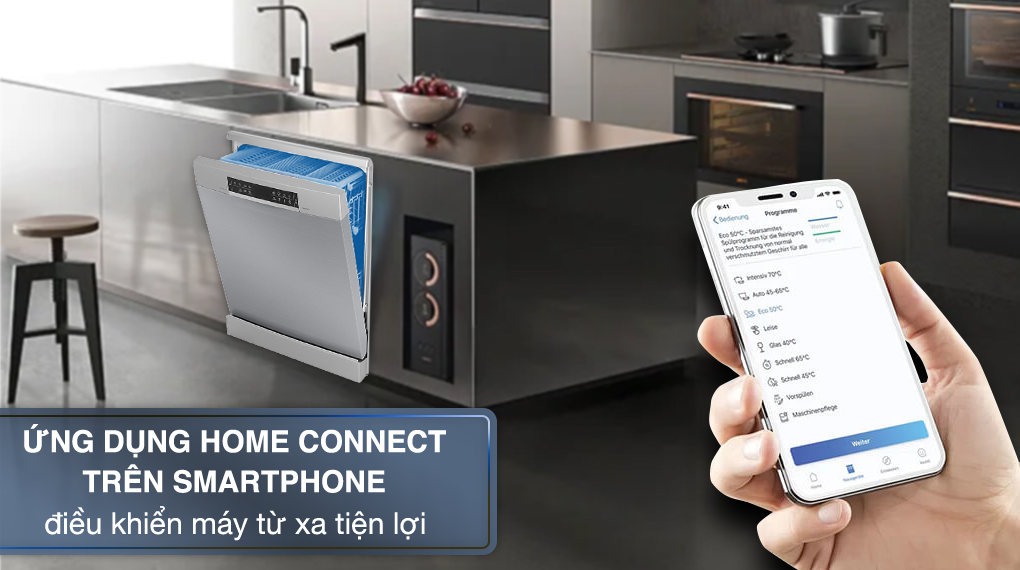 Một trong những hệ sinh thái phổ biến nhất hiện nay là Home Connect, được sử dụng trên các dòng máy rửa bát Bosch, Siemens và Gaggenau.