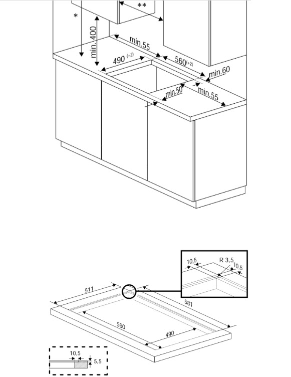 - Vùng nấu trước bên trái: Ø180 mm; 1800/3000 W