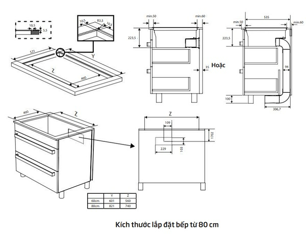 Vùng trước phải: 180×200 mm – 2.2 / 3.1 kW