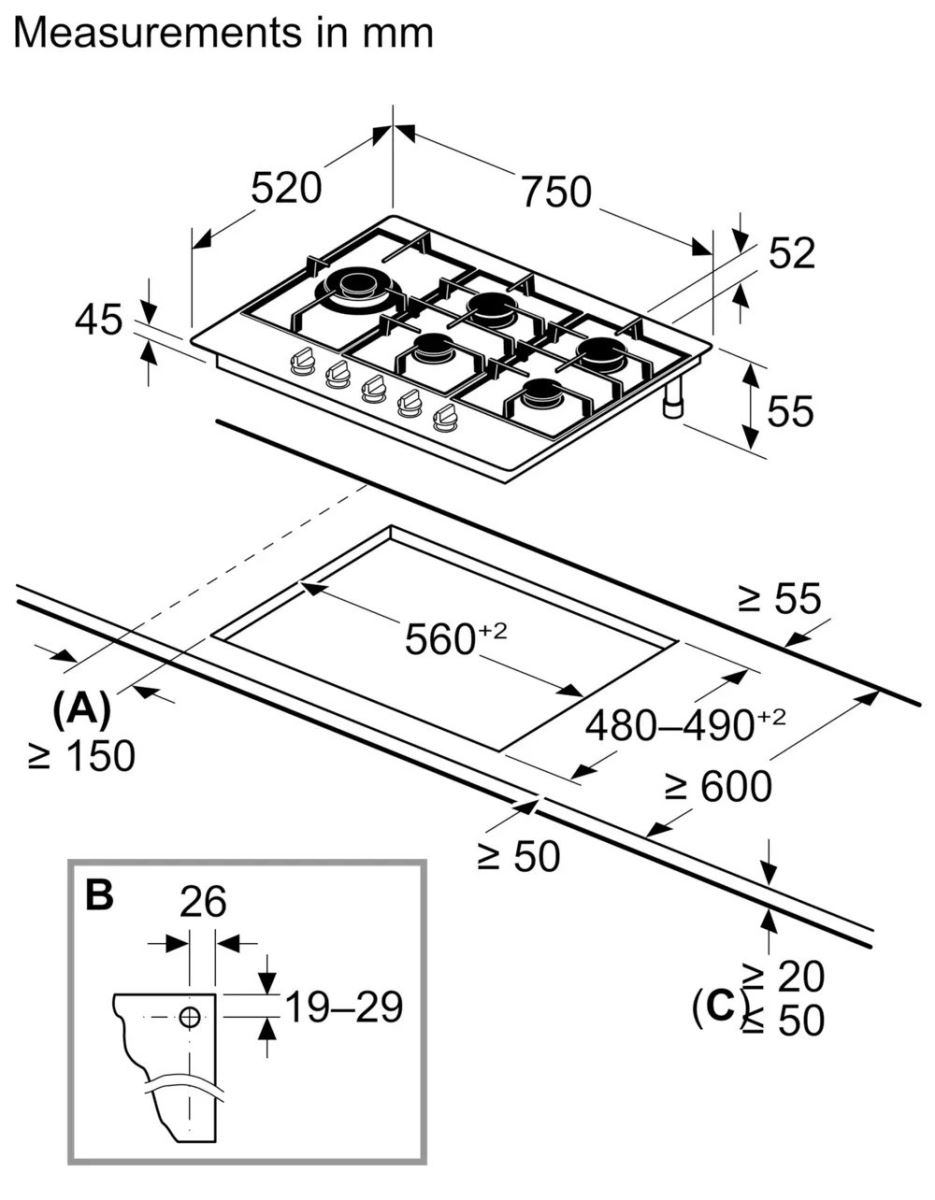 5 vùng nấu linh hoạt: Bếp được trang bị 5 đầu đốt với công suất khác nhau, trong đó có bếp wok công suất lớn khoảng 5 kW, phù hợp cho các món xào, áp chảo hoặc nấu với nhiệt lớn.