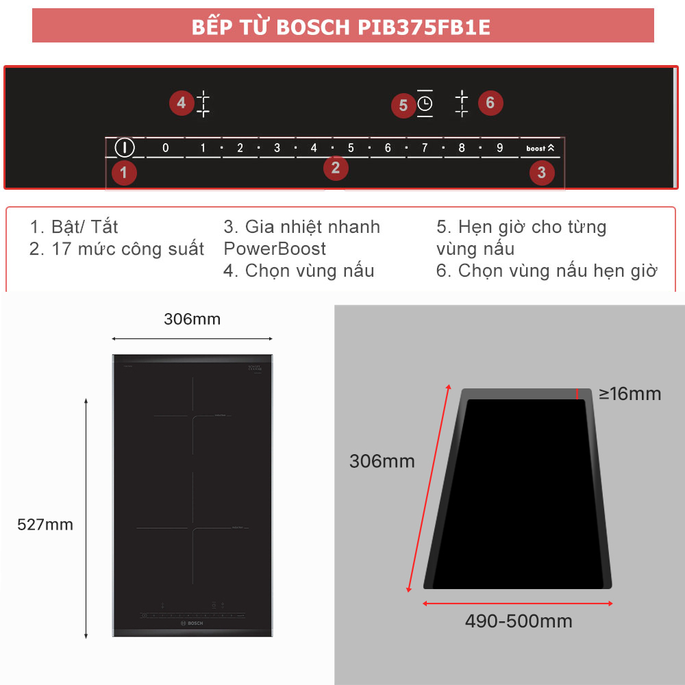 Vùng nấu trước: 2.2 kW (max 3.7 kW)