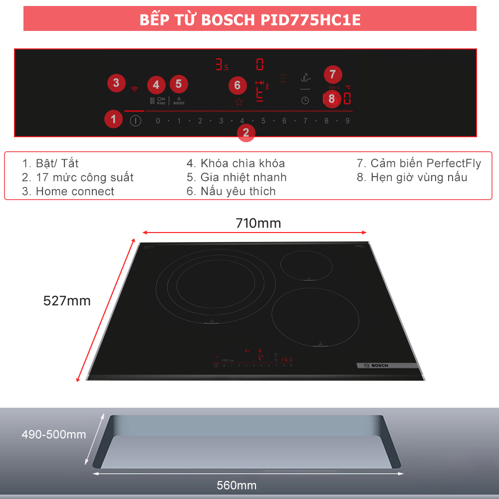 Làm nóng nhanh cả 3 vùng nấu, nhưng chỉ dùng Booster cho 1 vùng tại 1 thời điểm.