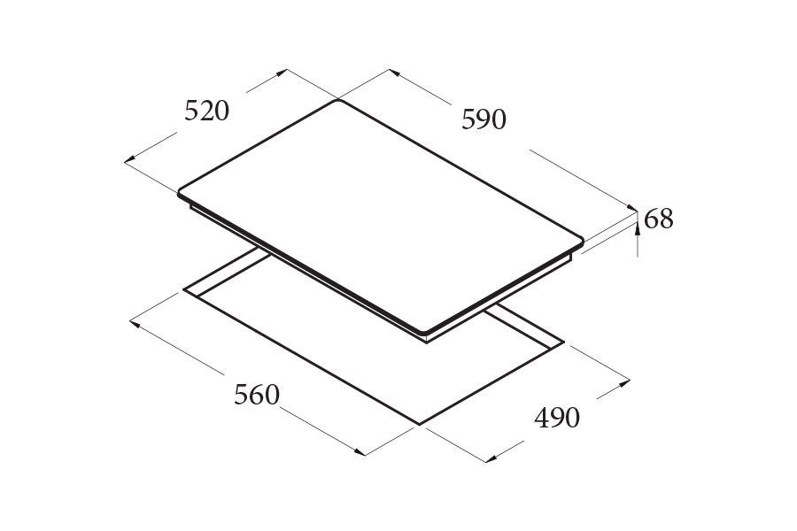 Mặt kính Schott Ceran, vát cạnh 2 cạnh trên dưới, bo góc sang trọng