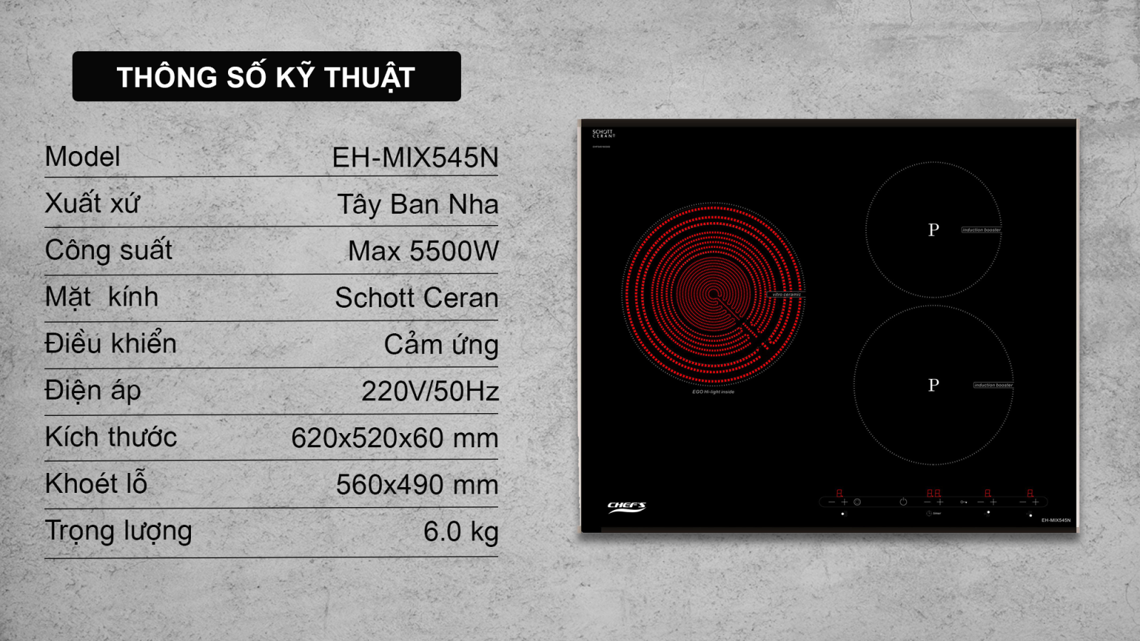 Bếp Từ 3 Vùng Nấu Chefs EH-MIX545N Kết Hợp Hồng Ngoại Giá Tốt