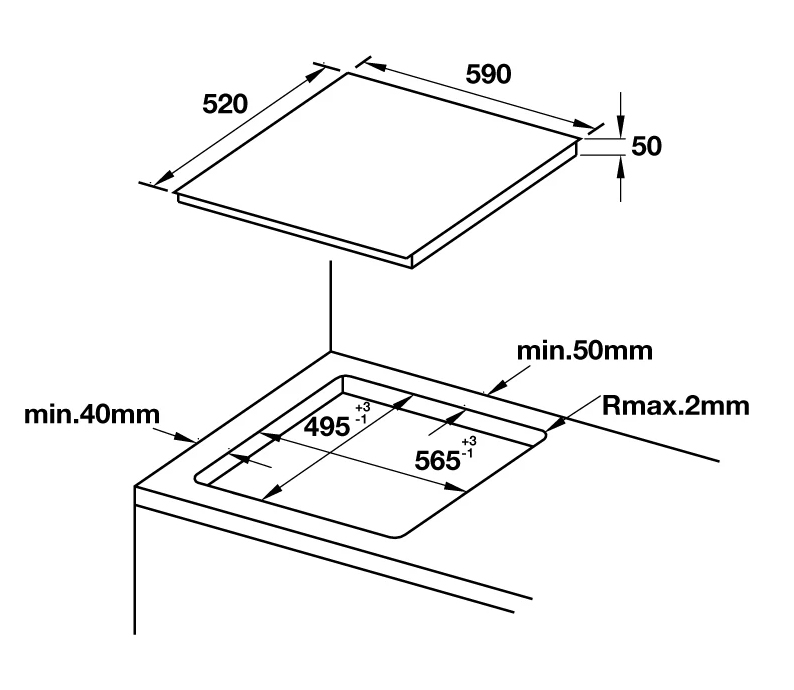 Kích thước bếp (D x R x C) 590 x 520 x 50 mm