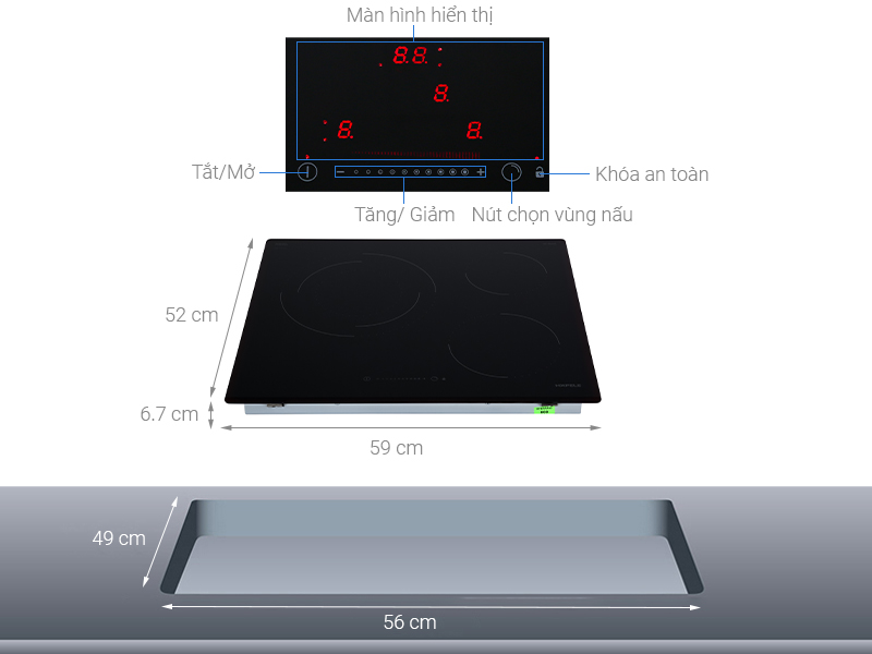- Bếp hồng ngoại 03 vùng nấu, lắp đặt âm chính hãng HAFELE