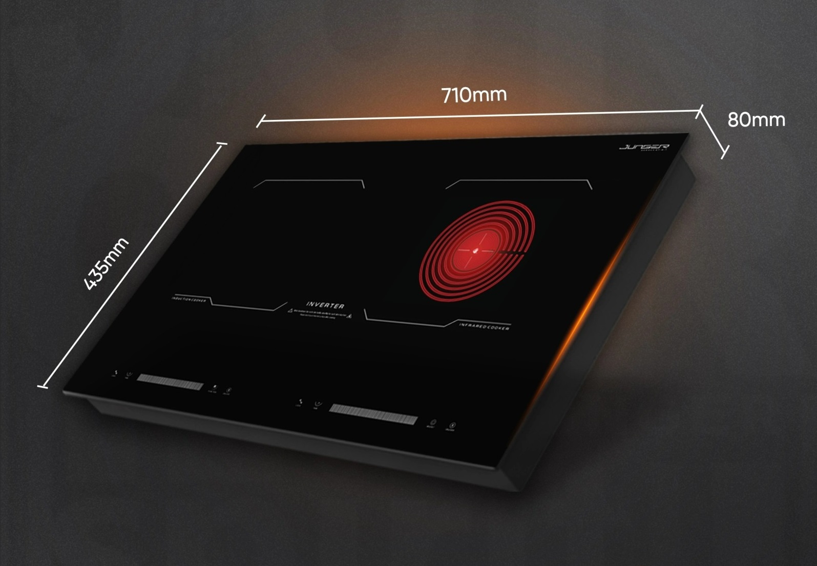 Hai vùng nấu: 1 vùng từ 2000W và 1 vùng hồng ngoại 2200W, giúp nấu nhiều món cùng lúc.