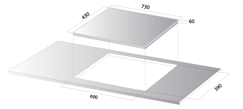 Kích thước khoét lỗ: R690 x S390 (mm)