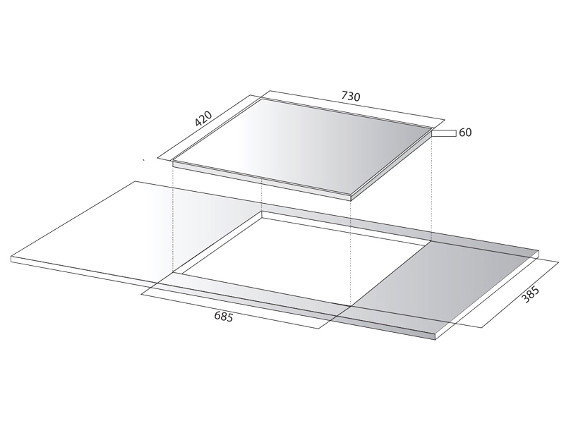 Kích thước khoét lỗ 685 x 385 mm