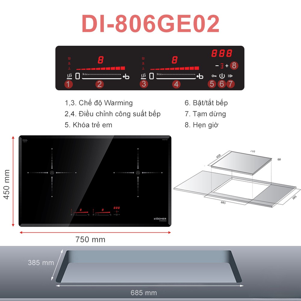 Bếp Từ Đôi Kocher DI-806GE02 Đa Năng Giá Ưu Đãi