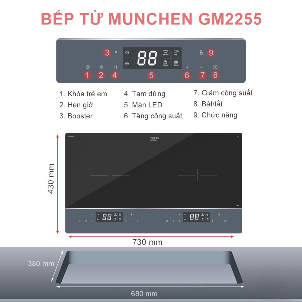 Bếp Từ Đôi Munchen GM2255 Sang Trọng Giá Ưu Đãi