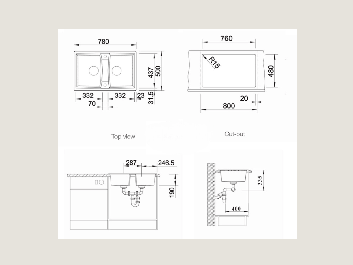 Kích thước cắt đá Lắp nổi: 760D x 480R mm