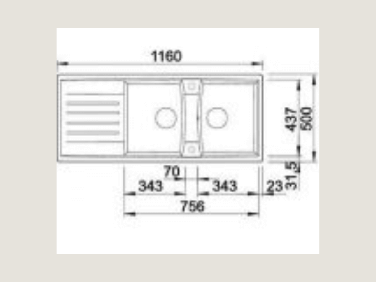 Kích thước chậu 1160D x 500R x 200S mm