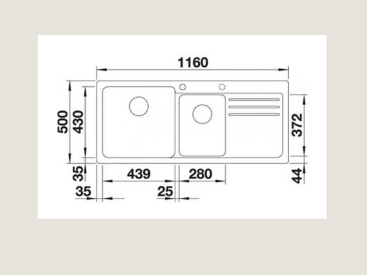 Kích thước cắt đá (DxR) Lắp dương: 1140 x 480 mm