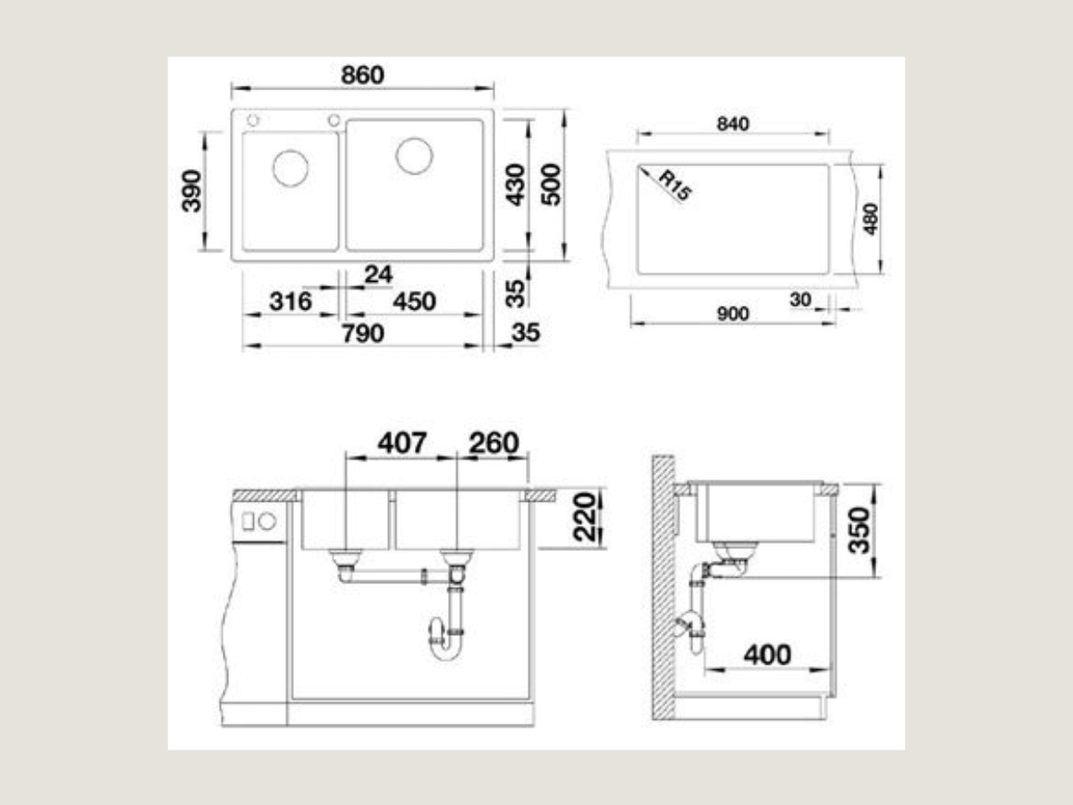 Kích thước chậu (DxRxS) 860 x 500 x 220 mm