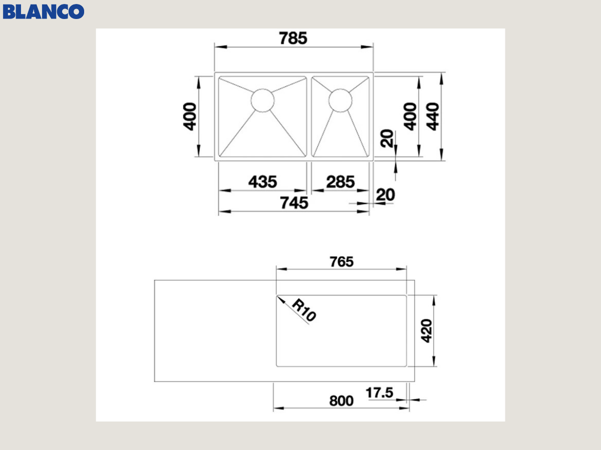 Chậu inox Blanco Quatrus R15 435/285-IU