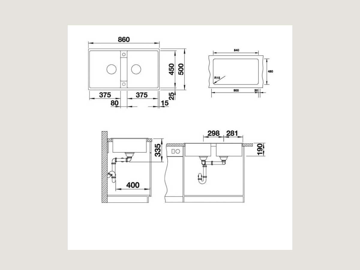 Kích thước cắt đá (DxR) Lắp âm: 820 x 400 mm