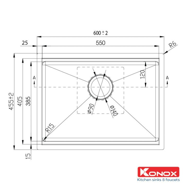 Vệ sinh lòng chậu dễ dàng với góc lượn R15 mm