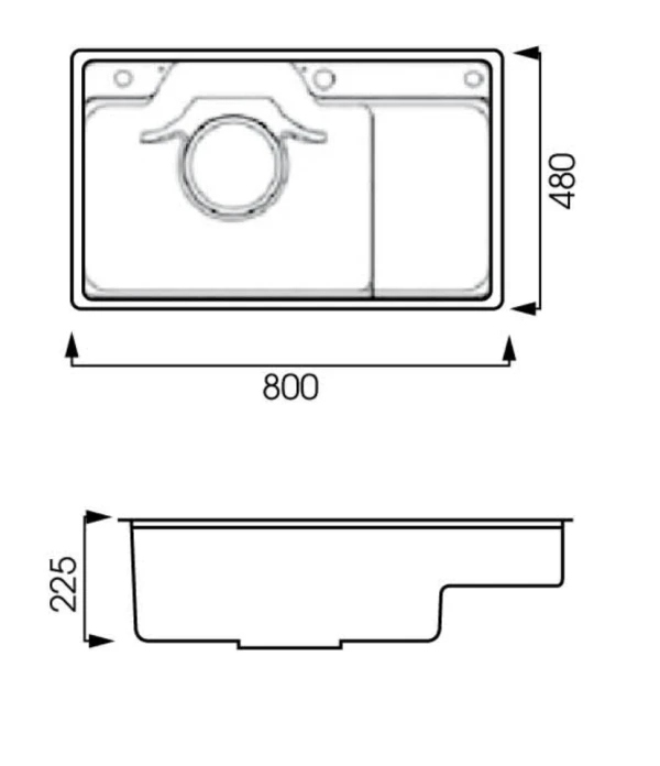 Kích thước chậu 800 × 480 × 225 mm