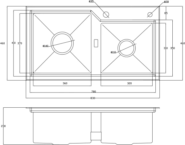 Thiết kế 2 hố lệch Cho phép sử dụng đồng thời hai hố — tiện cho sơ chế và rửa — nâng cao hiệu quả.