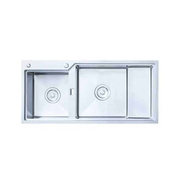 Thiết kế 2 hố lệch + bàn chờ rộng Tích hợp bàn chờ giúp sơ chế, đặt dụng cụ – phù hợp bếp muốn thao tác nhiều hơn.