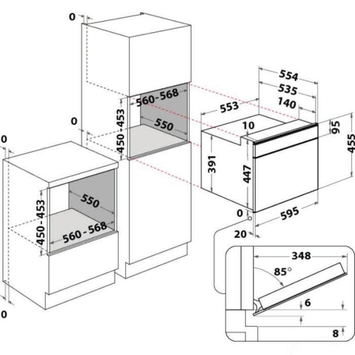Bề mặt bên trong lò và mặt kính vệ sinh dễ dàng; cửa kính 3 lớp cách nhiệt an toàn