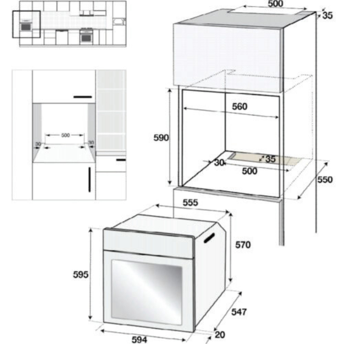 Lò có kích thước tiêu chuẩn âm tủ, nên cần đo kỹ không gian lắp đặt trước khi mua.