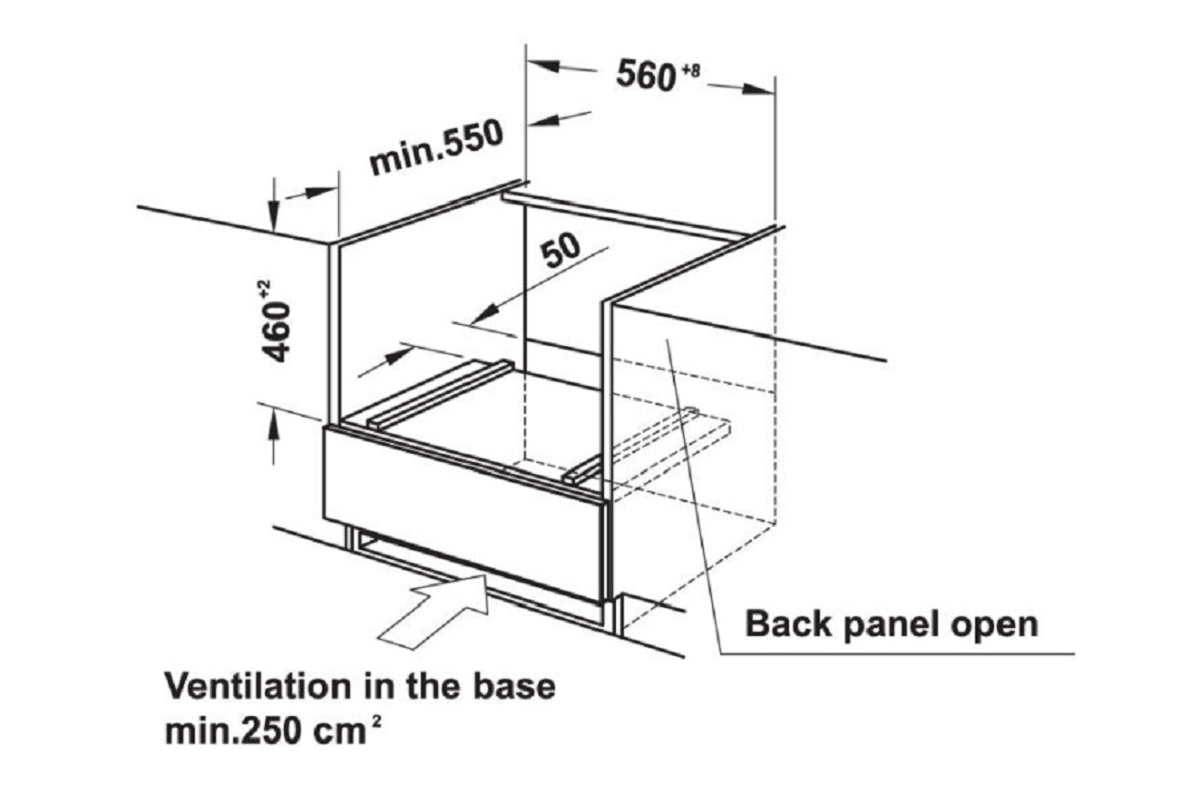 Hafele HCO-8T50A (538.01.431) có kích thước 595R x 454C x 568S mm khá nhỏ gọn, bạn có thể lắp đặt ở bất cứ vị trí nào trong không gian bếp nhà bạn.
