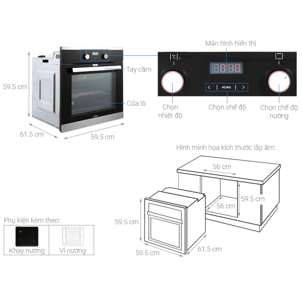 Phụ kiện đi kèm: 2 khay nướng, 1 vỉ nướng