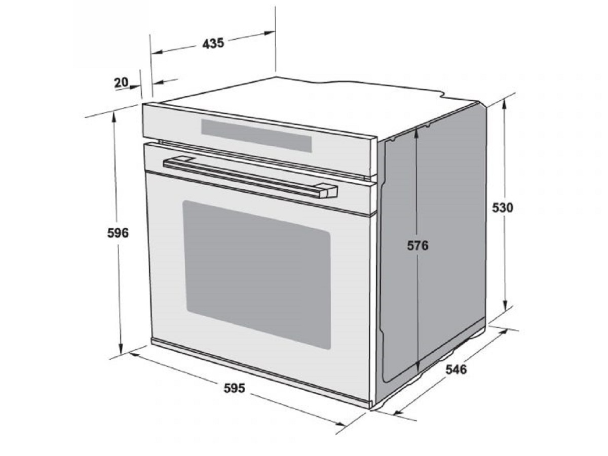 Kích thước lò nướng kết hợp hấp Hafele HSO-8T72A : R595 x S66 x C596 mm phù hợp với kích thước hộc tủ: R560 x S575 x C590mm