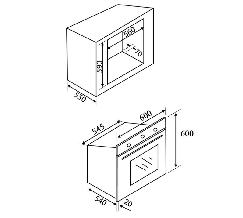 Kích thước sản phẩm (W x D x H): 595 x 560 x 595 mm