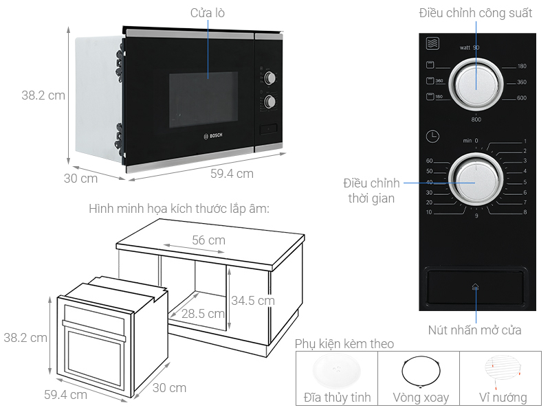 Bosch BEL520MS0K là một lựa chọn đáng cân nhắc cho căn bếp hiện đại — thiết bị vi sóng âm tủ đa năng, sang trọng và an toàn.