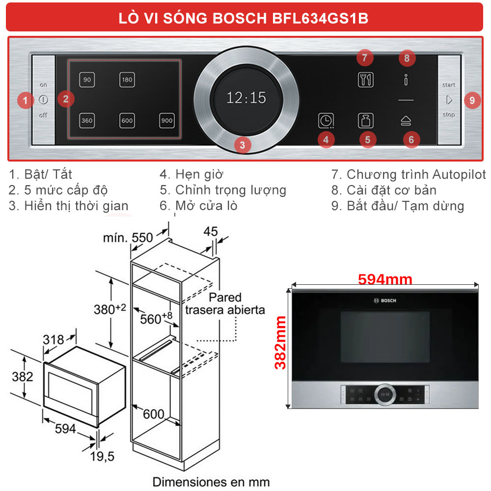 Bosch BFL634GS1 là lựa chọn tuyệt vời nếu bạn đang tìm lò vi sóng âm tủ cao cấp – thiết kế đẹp, tính năng thông minh và hiệu năng ổn định.