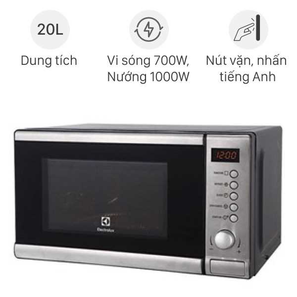 Lò vi sóng + nướng Electrolux EMS2027GX là thiết bị đa năng phù hợp cho gia đình nhỏ, tích hợp chế độ vi sóng và nướng (grill) trong một thiết bị. Với dung tích 20 lít, thiết kế nhỏ gọn và các chức năng tiện lợi như rã đông, hẹn giờ, điều khiển điện tử + núm xoay, sản phẩm đáp ứng tốt nhu cầu nấu, hâm, nướng nhẹ cho gia đình 2–3 người. bepxanh.com+2ManualsLib+2