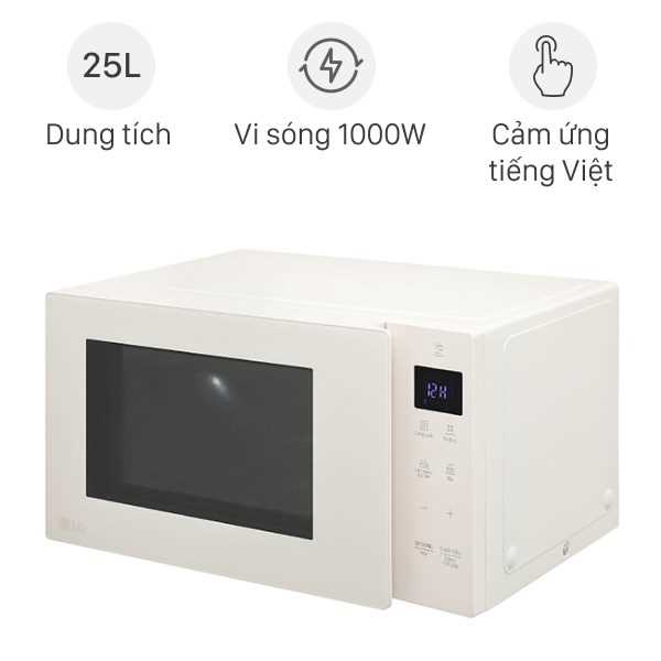 LG MS2535GIK có dáng đẹp, mặt kính + khung màu be, đem lại cảm giác nhẹ nhàng và phù hợp với nội thất bếp sáng. Các nút cảm ứng + màn hình LED hiển thị rõ ràng, trực quan khi thao tác.