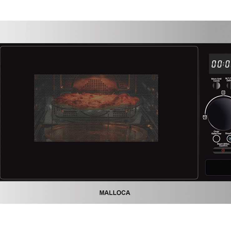 Thiết kế mặt kính đen phối inox giúp MW 927S trông hiện đại, sang trọng và dễ phối hợp với các thiết bị bếp khác. Malloca
