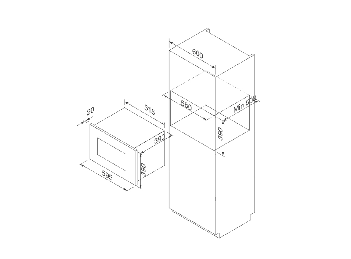Kích thước 595 × 400 × 390 mm là chuẩn cho việc lắp âm tủ, không quá sâu để gây lấn chiếm không gian tủ phía sau. malloca.com+2Meta.vn+2