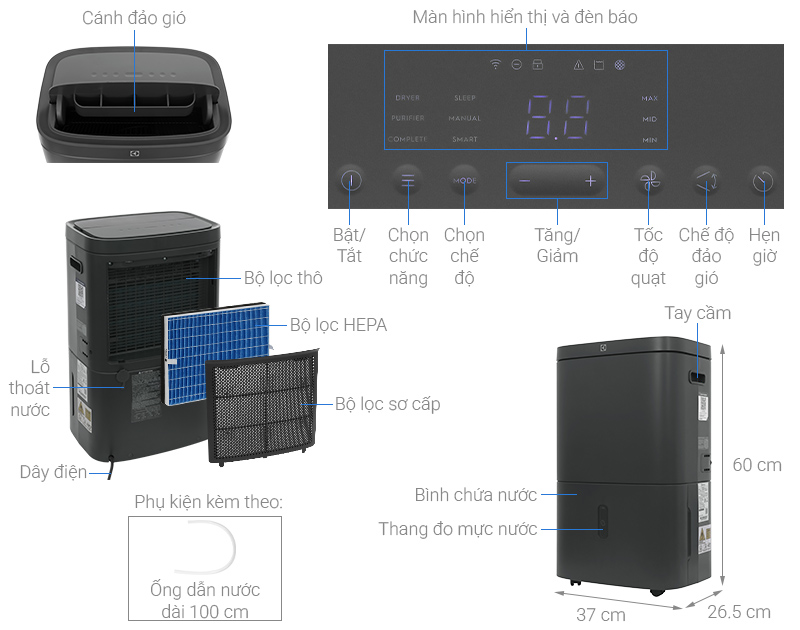 Máy hút ẩm kết hợp lọc không khí Electrolux EDH16TRBD3