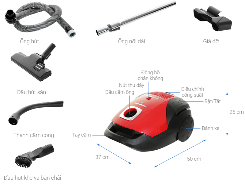 Tiện ích Có chức năng thổi bụi; Điều chỉnh sức hút bụi; Dây điện tự thu gọn