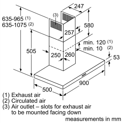 635–965 / 635–1075 x 900 x 500 mm