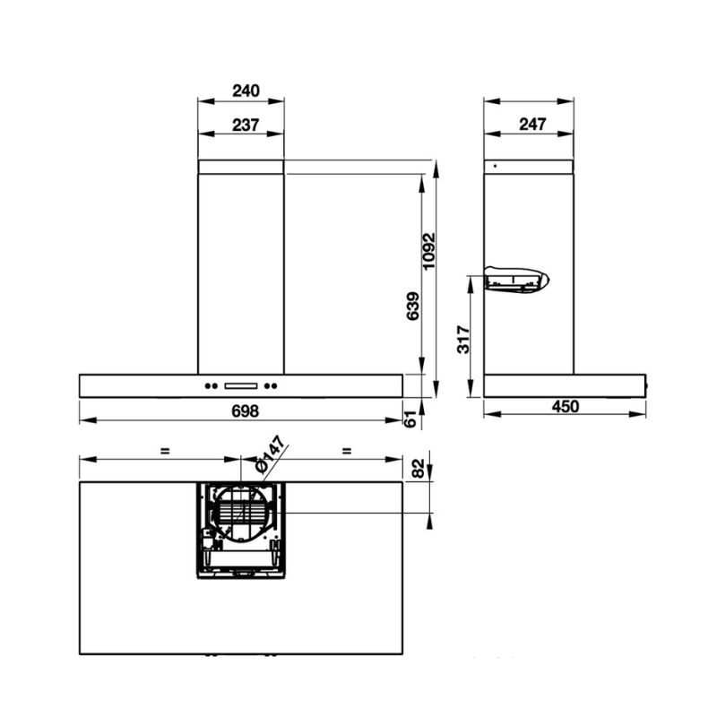 Bảng điều khiển nút nhấn với 3 tốc độ hút với công suất hút lên đến 900m3/giờ: Máy hút mùi Hafele vận hành từ công suất thấp đến công suất cao một cách êm ái, trơn tru tuỳ thuộc vào nhu cầu lựa chọn của người dùng. Nhờ lực hút hiệu quả giúp loại bỏ mùi linh hoạt, ít hao tốn điện. Chế độ hút và khử mùi trực tiếp bằng than hoạt tính hoặc thoát ống ra ngoài, đường kính ống thoát 120 mm.