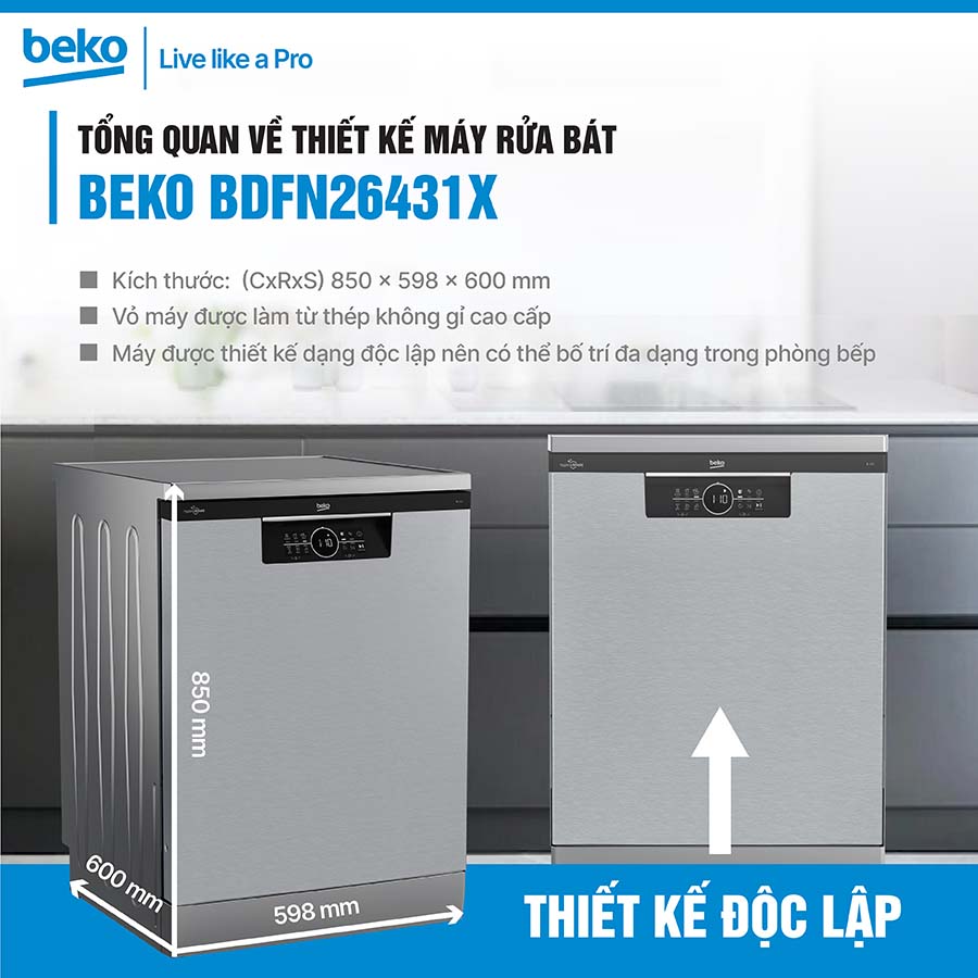 Máy Rửa Bát Độc Lập Beko BDFN26431X 14 Bộ Sạch Khuẩn Giá Ưu Đãi