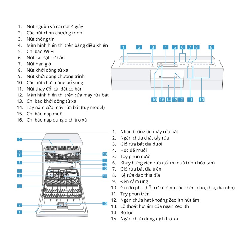 - Máy tích hợp 8 chương trình rửa và 5 chức năng tăng cường